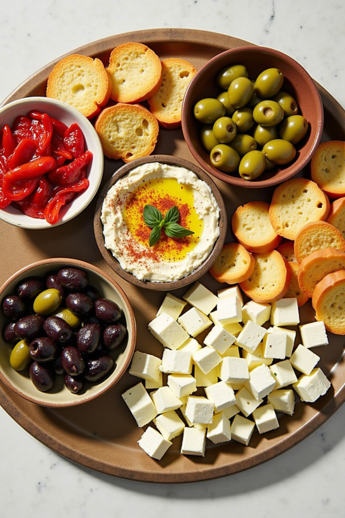 A Mediterranean mezze platter is the ultimate healthy appetizer spread. It brings together an array of textures and flavors—crunchy veggies, creamy hummus, and salty feta—that encourage grazing and sharing. You can easily scale the platter up for a crowd or prepare mini plates for more intimate settings.